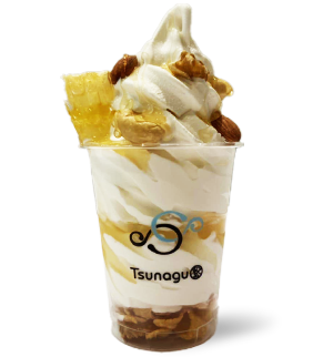 ソフトクリームの甘さと、アサイーの爽やかさがクセになるスムージーが飲めるのは繋だけ。